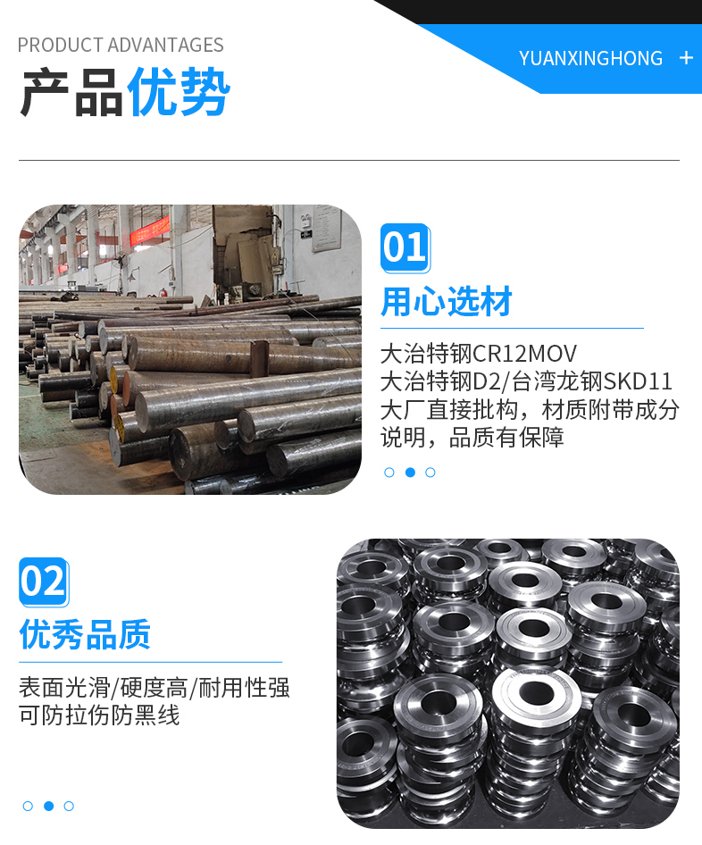 浙江冠杰焊管模具廠選用模具鋼Cr12Mov 和Cr12為原材料進行生產,其產品具有磨性高、 韌性強、 抗高壓、高硬度、淬透性強特點。模具種類有:圓管模、方管模、八方管模、圓頭扁管模、還可以針對不同用戶設計制造各樣式異形不銹鋼型材磨具。